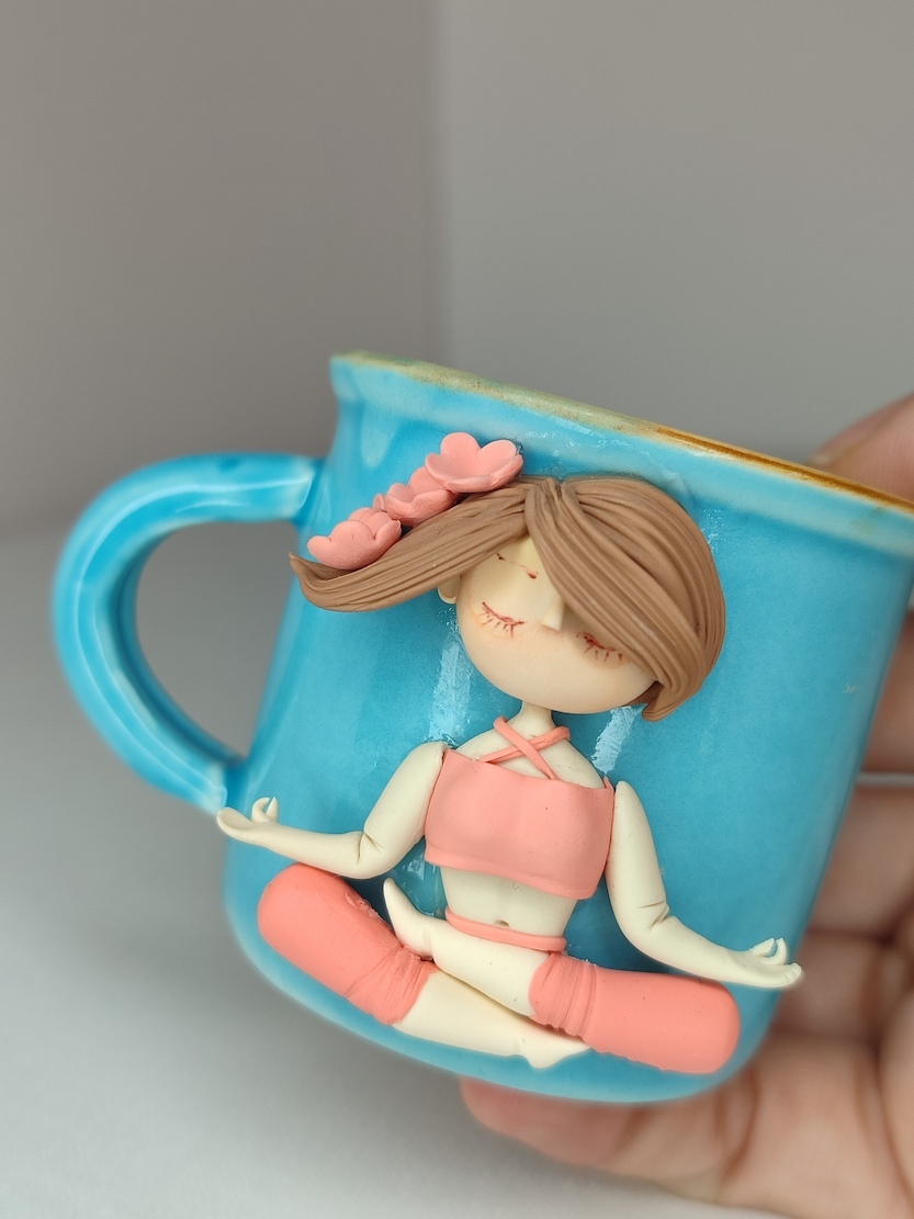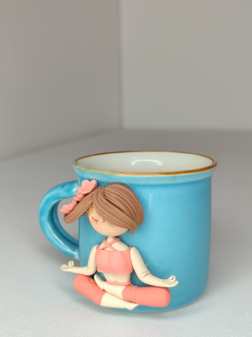 این ماگ قشنگ با یه خمیر پلیمری مخصوص و دست ساز اینجا نشسته تا با یکی از شما یوگا دوست های عزیز بیاد و توی لحظه های کتاب خوندن یه شات قهوه شمارو مهمون کنه :)