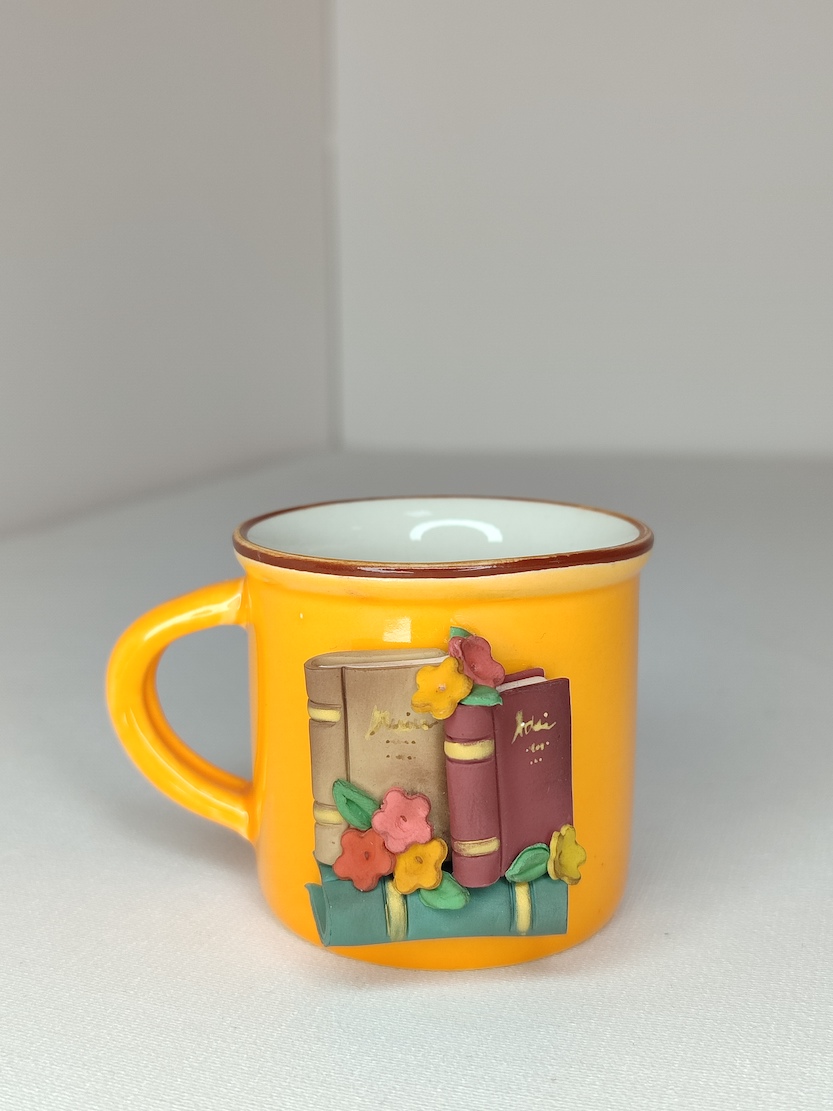 این ماگ قشنگ با یه خمیر پلیمری مخصوص و دست ساز اینجا نشسته تا با یکی از شما کتاب دوست های عزیز بیاد و توی لحظه های کتاب خوندن یه شات قهوه شمارو مهمون کنه :)