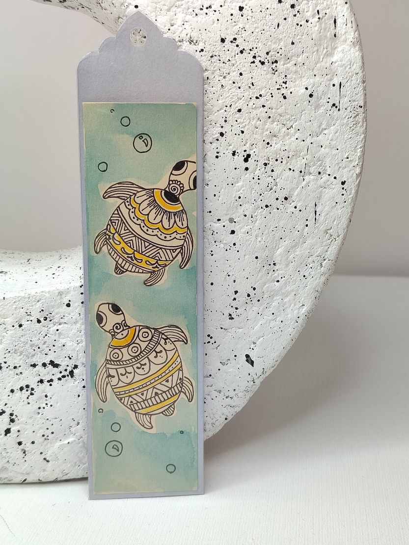 بوک مارک لاک پشت های کوچک بازیگوش با نقش های زیبای ماندالا بر روی لاک
