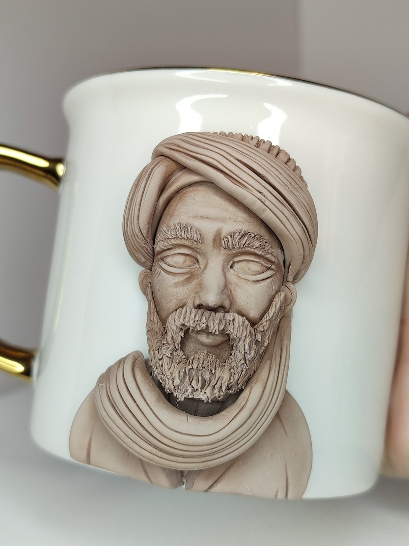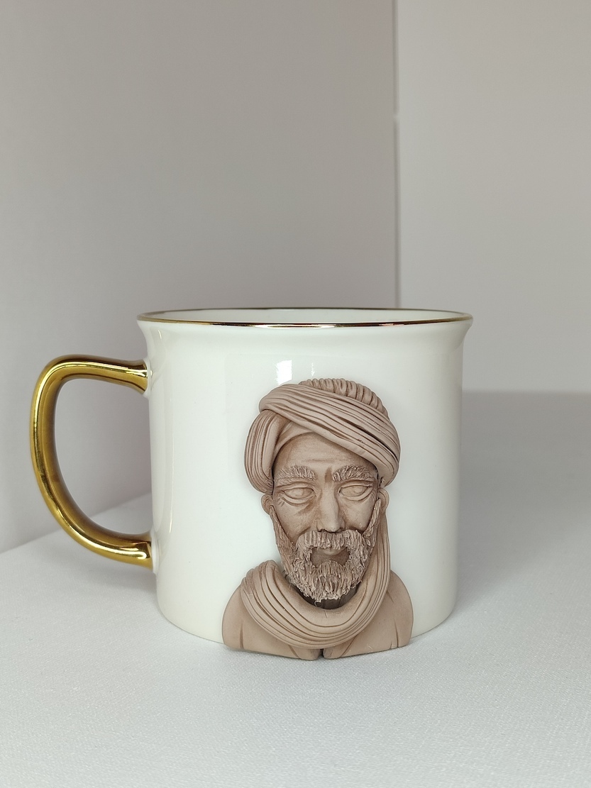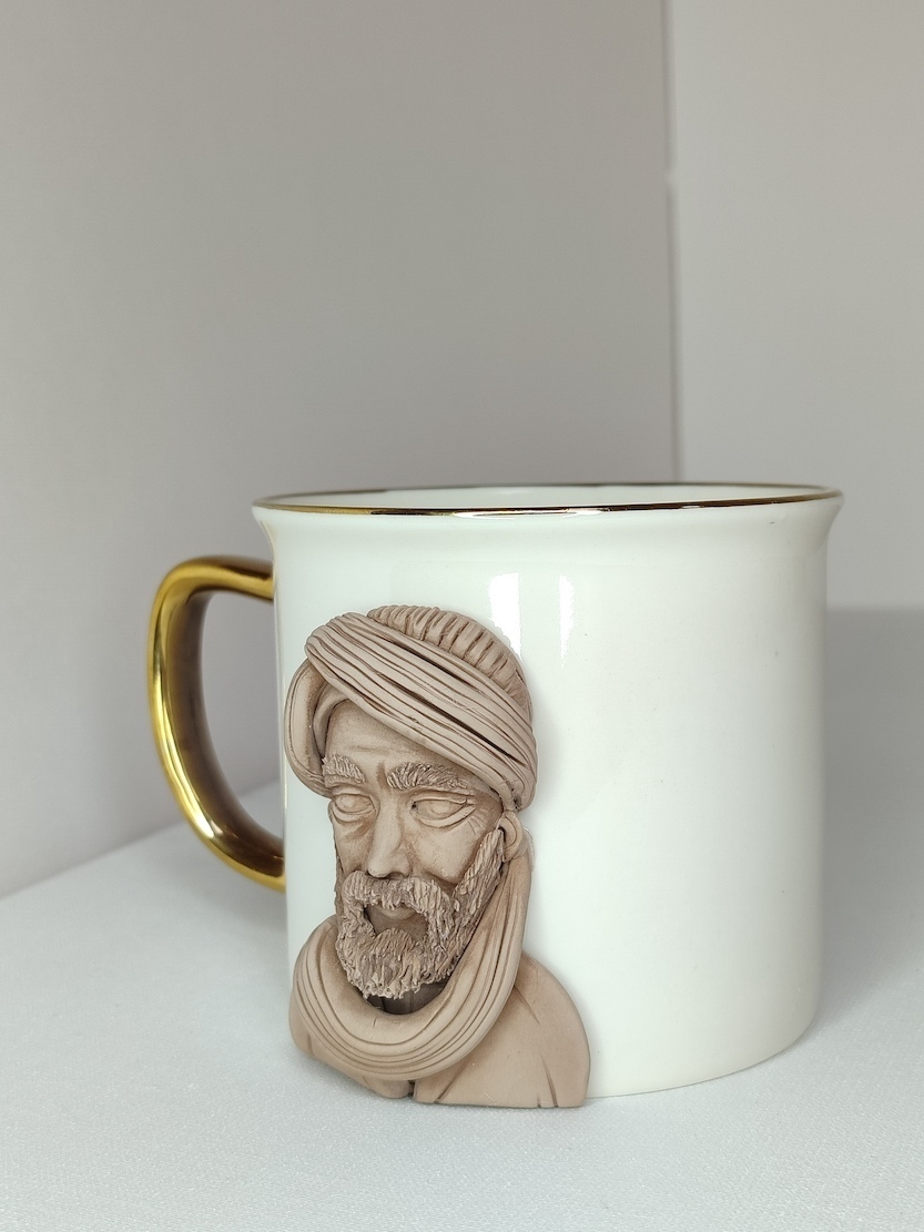 ماگ ابوعلی سینا که با خمیر پلیمری ساخته شده با دست یک هنرمند برای هدیه ای ناب