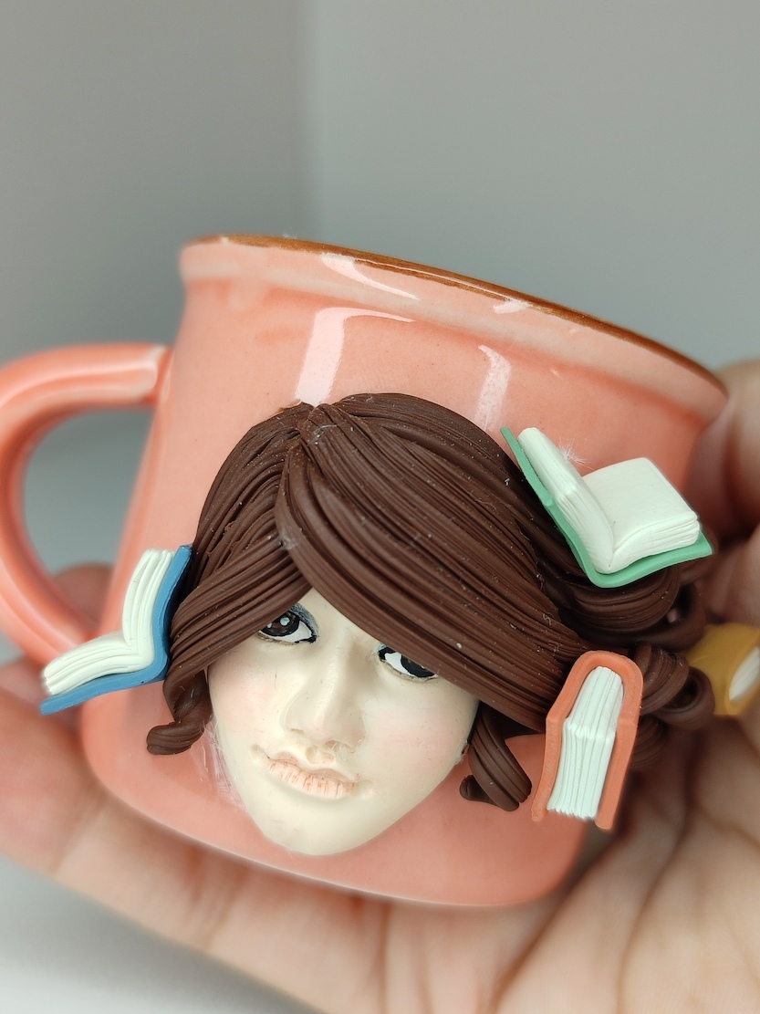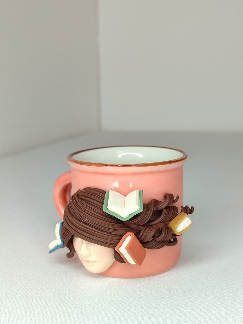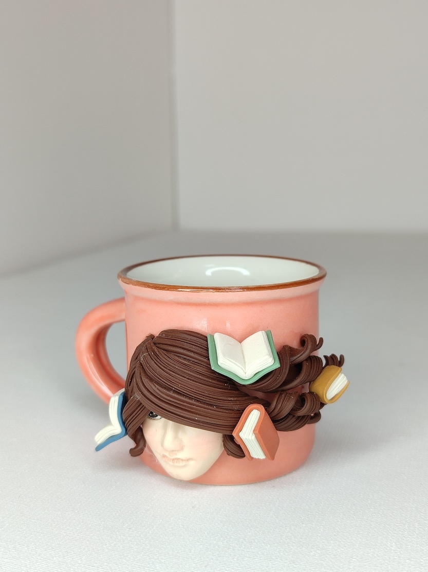 این ماگ قشنگ با یه خمیر پلیمری مخصوص و دست ساز اینجا نشسته تا با یکی از شما کتاب دوست های عزیز بیاد و توی لحظه های کتاب خوندن یه شات قهوه شمارو مهمون کنه :)