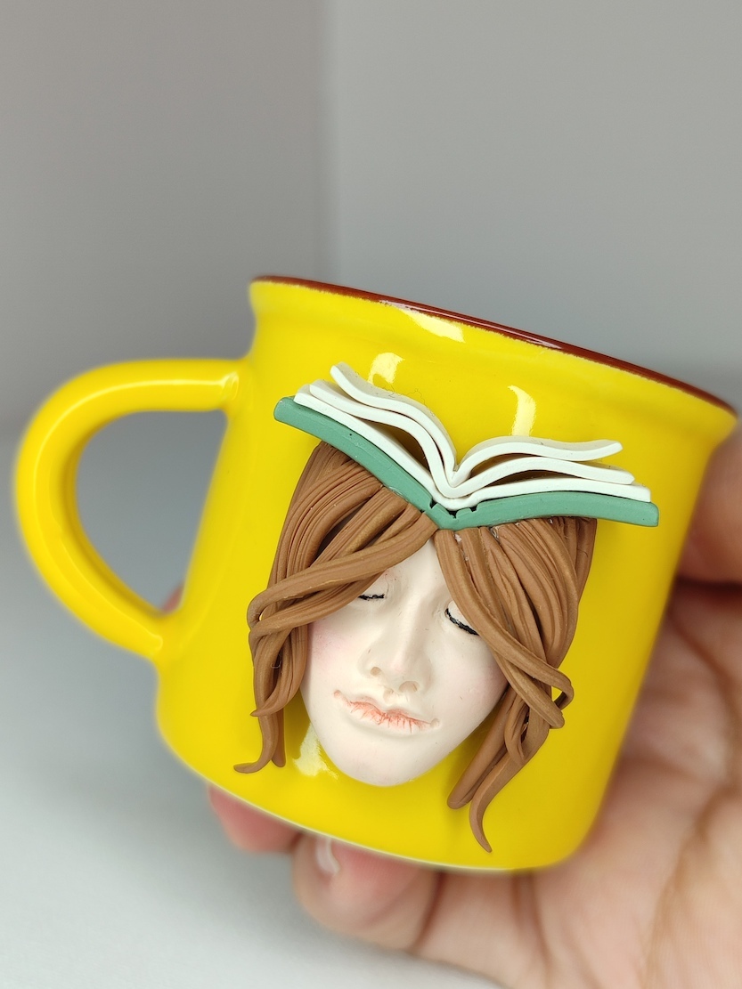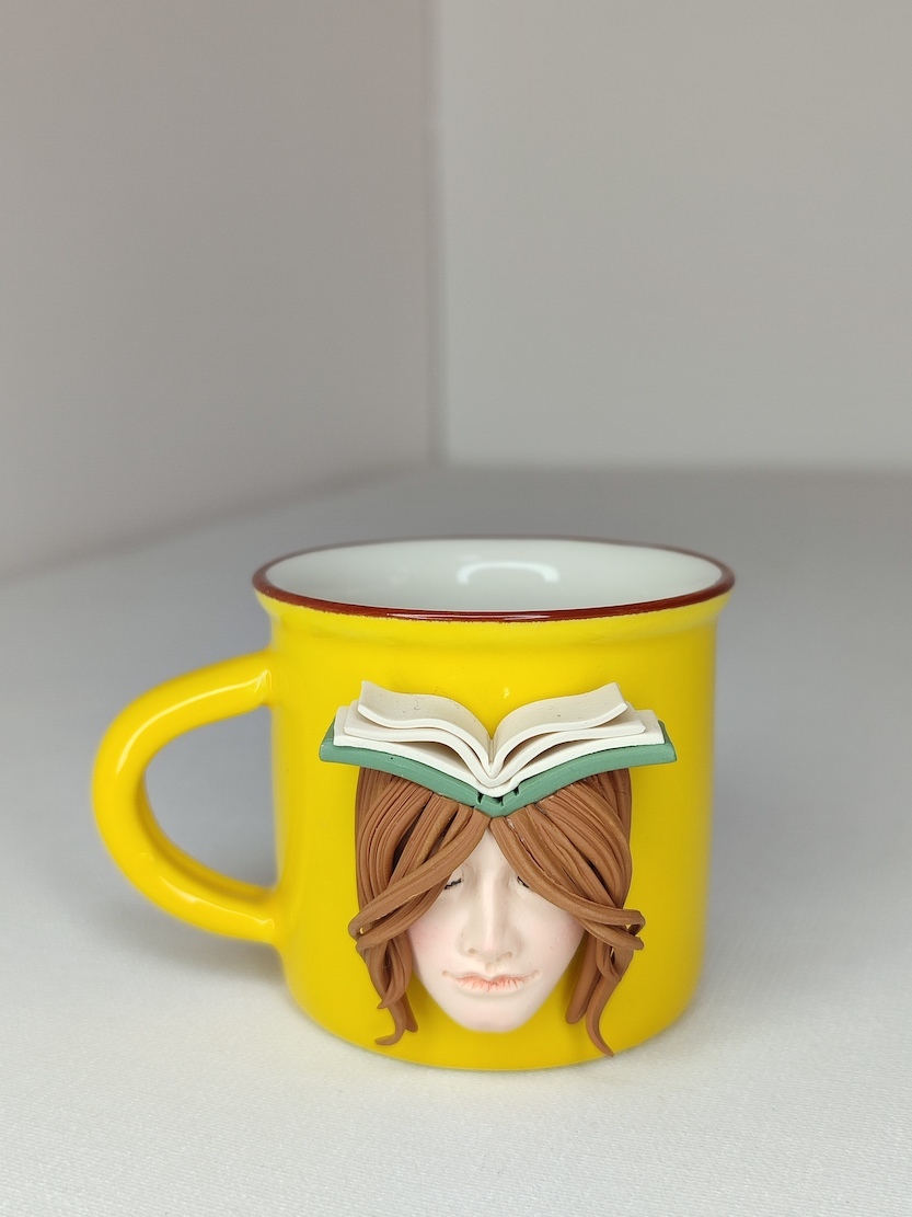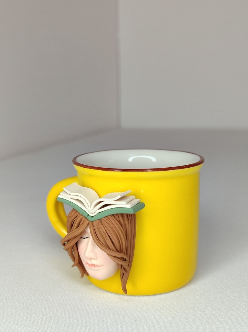 این ماگ قشنگ با یه خمیر پلیمری مخصوص و دست ساز اینجا نشسته تا با یکی از شما کتاب دوست های عزیز بیاد و توی لحظه های کتاب خوندن یه شات قهوه شمارو مهمون کنه :)